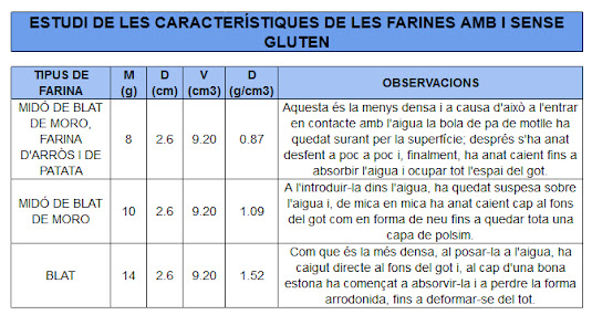 | Taula 1. Resultats de la concentració de gluten en diferents aliments. En la darrera filera, els resultats de la cervesa. |